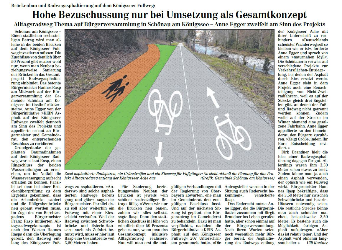Wir wollen, dass der Königsseer Fuß- und Radweg vom Triftplatz bis zur Schwöbbrücke in seiner jetzigen Form dauerhaft bestehen bleibt, insbesondere darf dieser asphaltiert werden!
